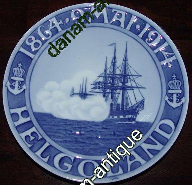 Royal Copenhagen Gedenkteller von 1914 Nr. RC-CM150. Misst 19,5cm und ist in perfektem Zustand. Entworfen von Christmas Benjamin-Olsen. Helgoland-Tafel. Das Schiff der Linie in der Schlacht. Inschrift: Helgoland 1864-Mai 1914. In Auftrag gegeben von der Marinevereinigung anlässlich des 50. Jahrestages der Schlacht. Hergestellt in 1761 Exemplaren.