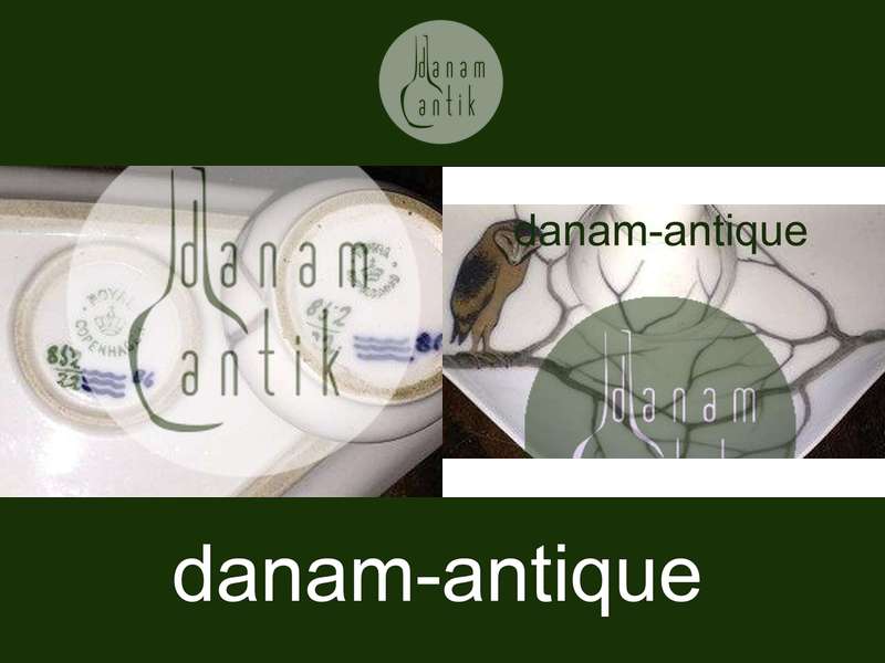 Royal Copenhagen Jugendstil Tintenfass Set mit Eule Nr. 852/22. Misst 19,5cm x 11,5cm und ist in gutem Zustand.