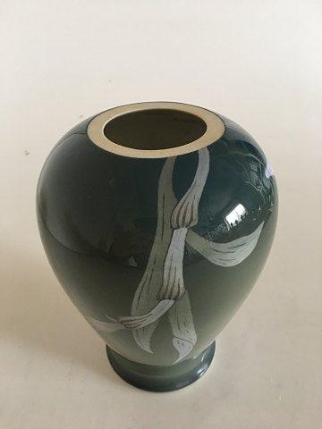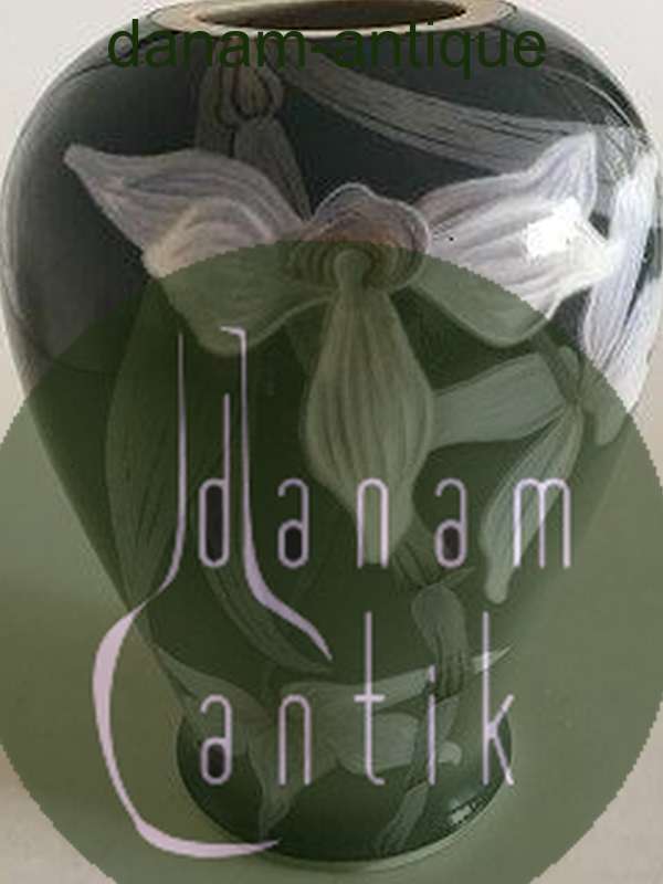Misst 19cm und ist in gutem Zustand, abgesehen von der Oberseite, die nach unten getragen wird. Bei der Vase scheint es sich ursprünglich um eine Lampe zu handeln, weshalb der Lampenbeschlag später entfernt wurde.