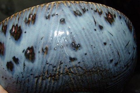 Royal Copenhagen Axel Salto Steingut Schale Nr. 20728. 15,4cm Durchmesser und 5,7cm hoch. Hat einen Glasurriss, siehe Bild.