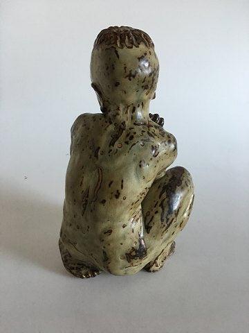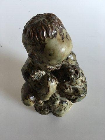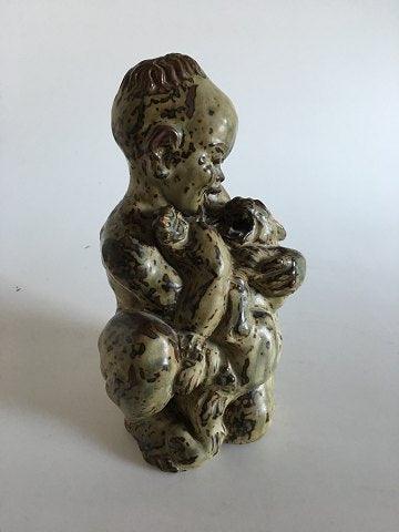 Königliche Kopenhagener Steingutfigur eines Negerjungen mit Katze Nr. 20244 von Knud Kyhn, Maße 27cm.