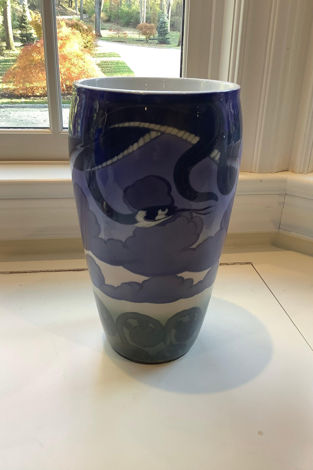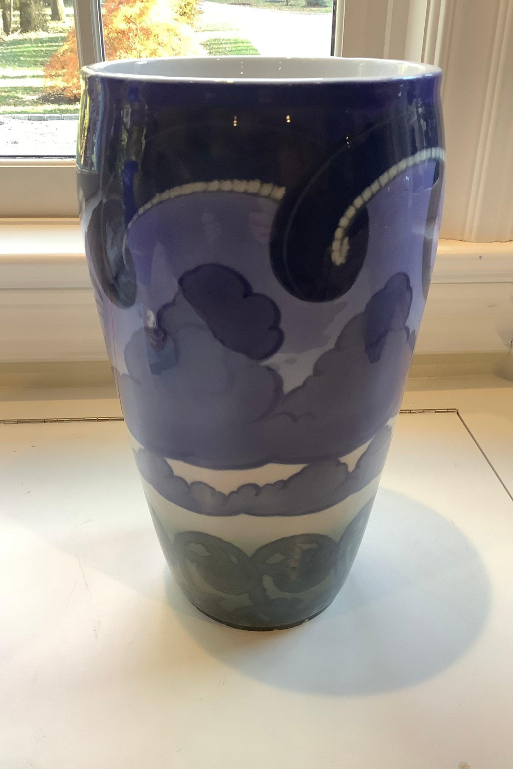 Royal Copenhagen Unika Art Nouveau Vase von Carl Mortensen aus dem Jahr 1892 Nr. 3458Maße 34cm x 19cm (13½ h × 7½ dia in )Guter Zustand, aber hat kleinen Chip auf Fußband.