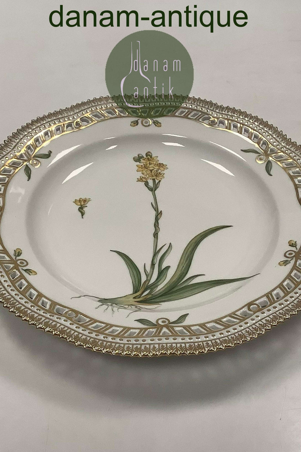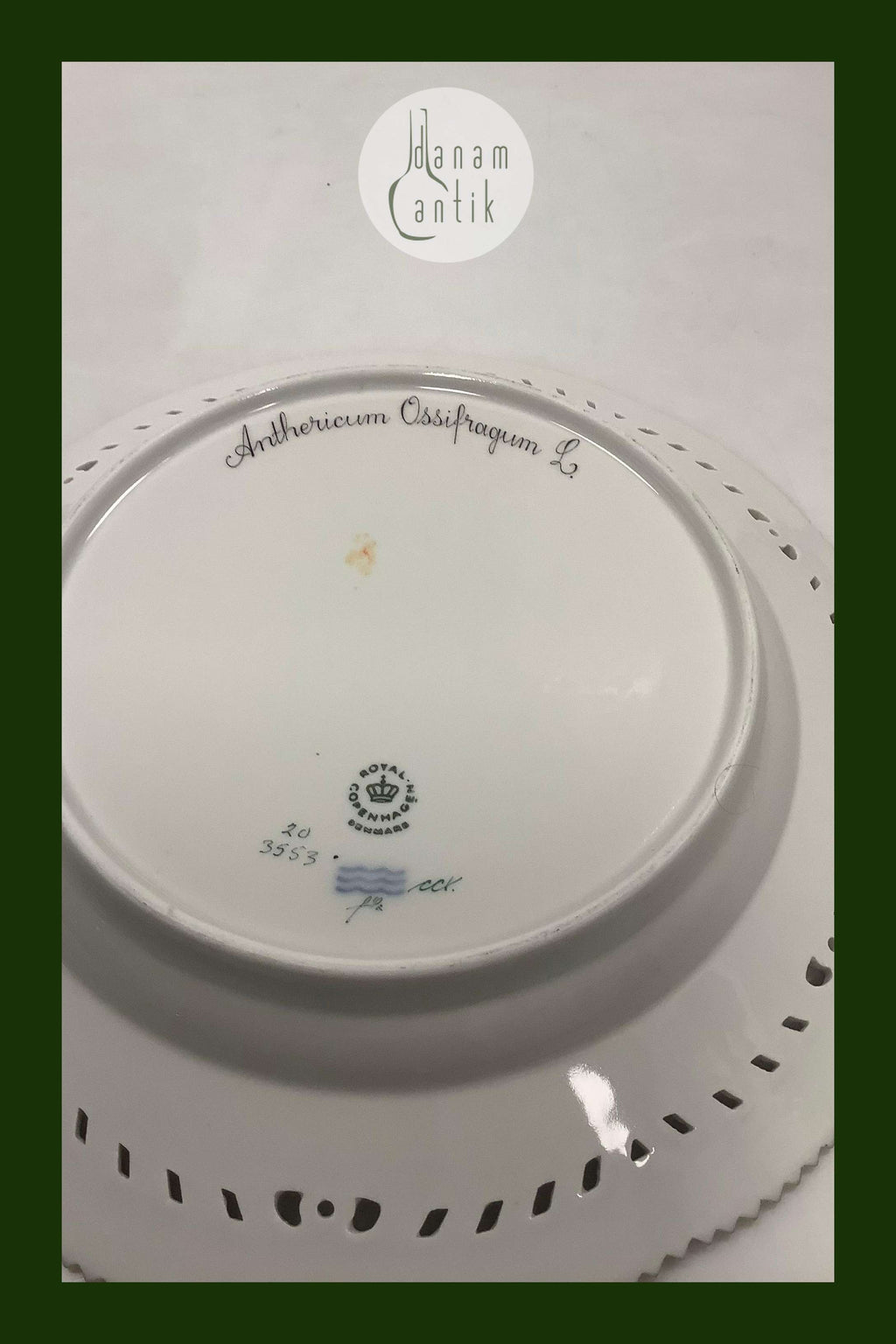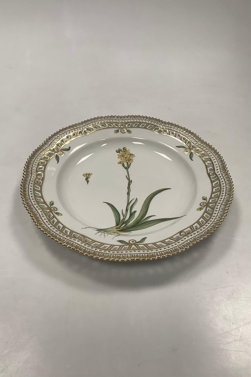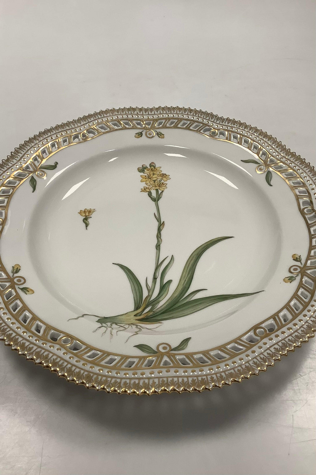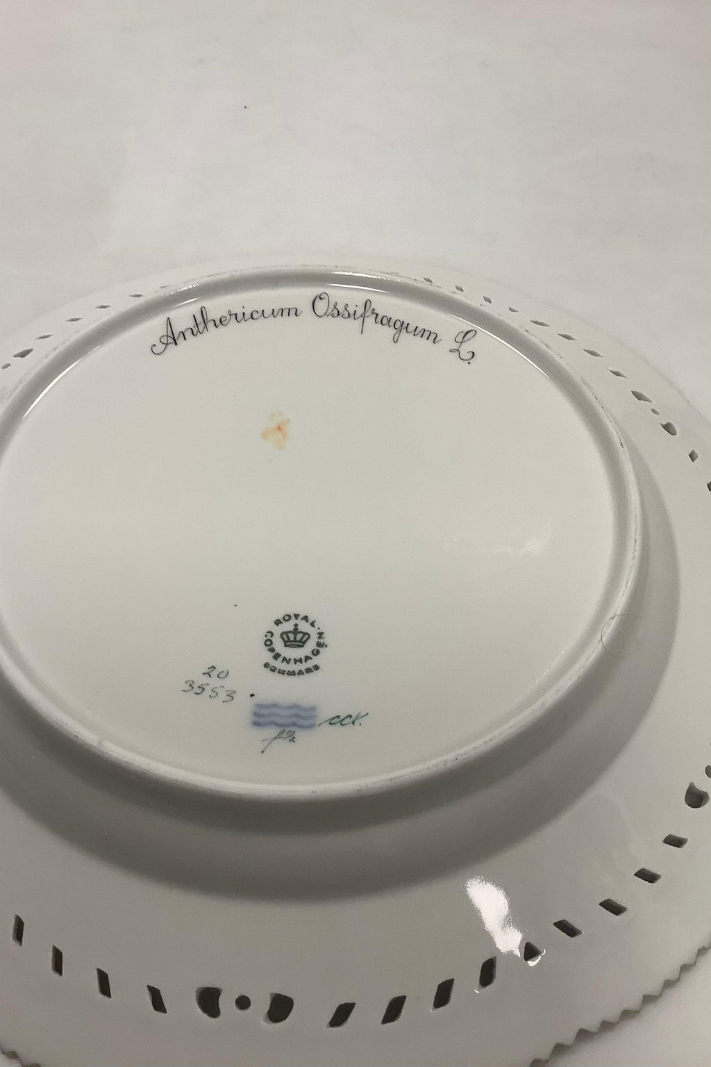 Royal Copenhagen Flora Danica tallerken med gennembrudt kant No 20/3553. Latinsk navn: Anthericum Ossifragum L