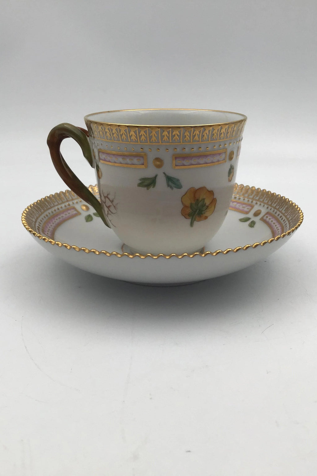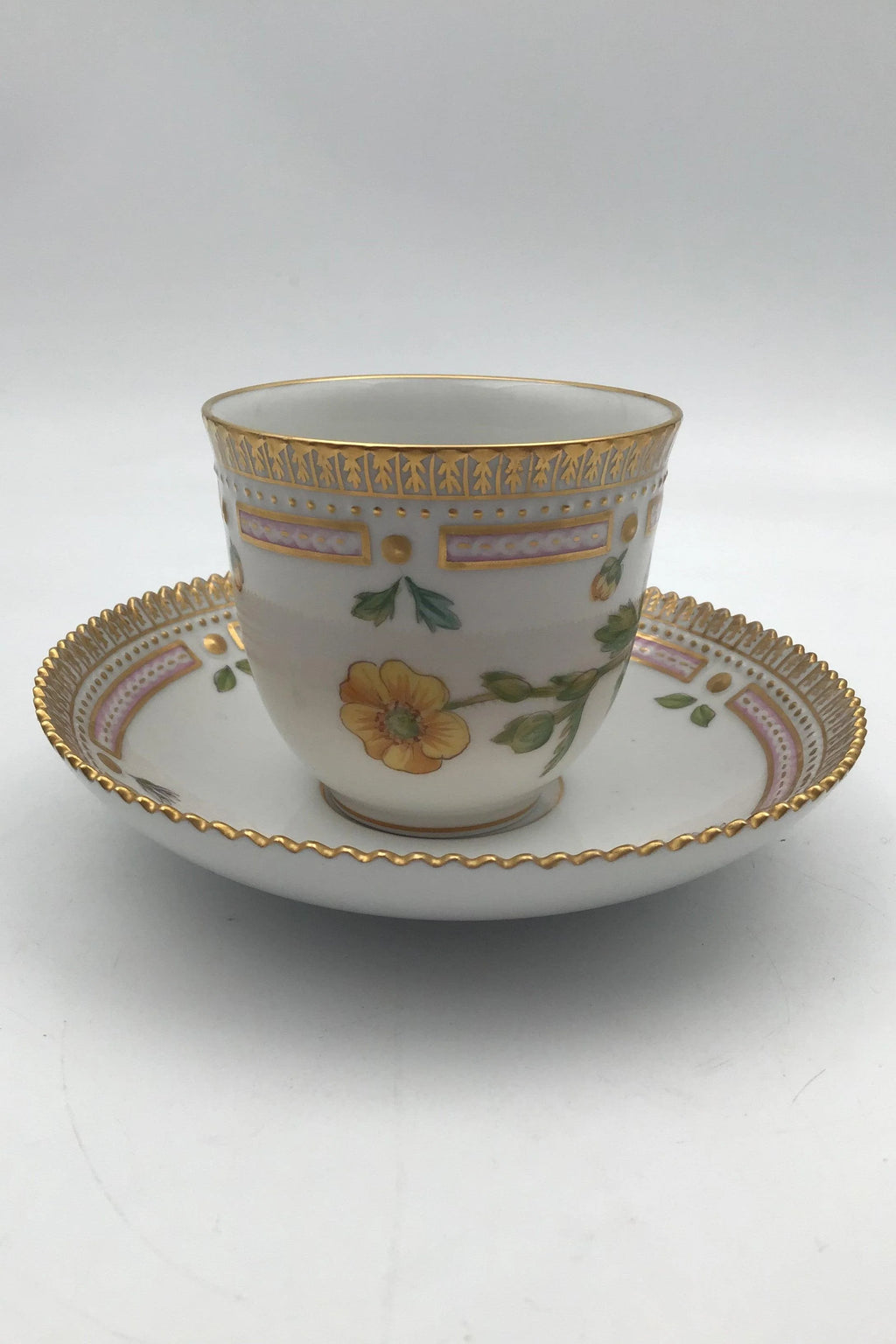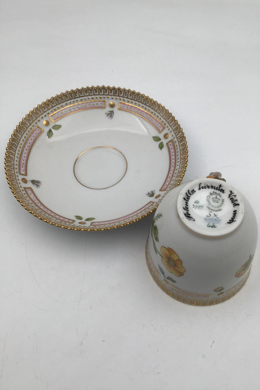 Royal Copenhagen Flora Danica Kaffeetasse und Untertasse Nr. 20/3597. Lateinischer Name: Potetilla hirsuta Vahl msdr Maße Tasse: H 7 cm x 7,5 cm diam. (H 2.75 Zoll x 2.95 Zoll Durchm.) Untertasse: 13,8 cm (5.43 Zoll)