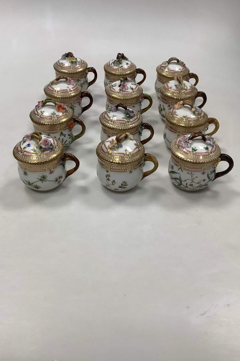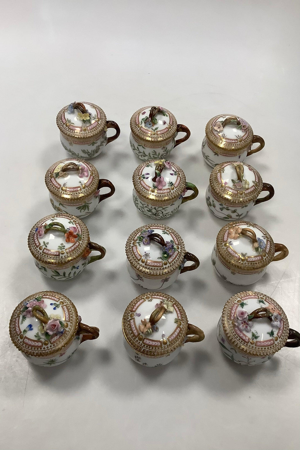 Satz von 12 antiken Royal Copenhagen Flora Danica Sahnebechern Nr. 200/3514