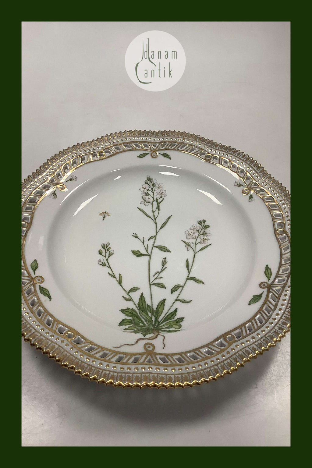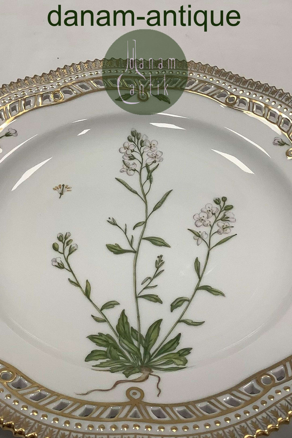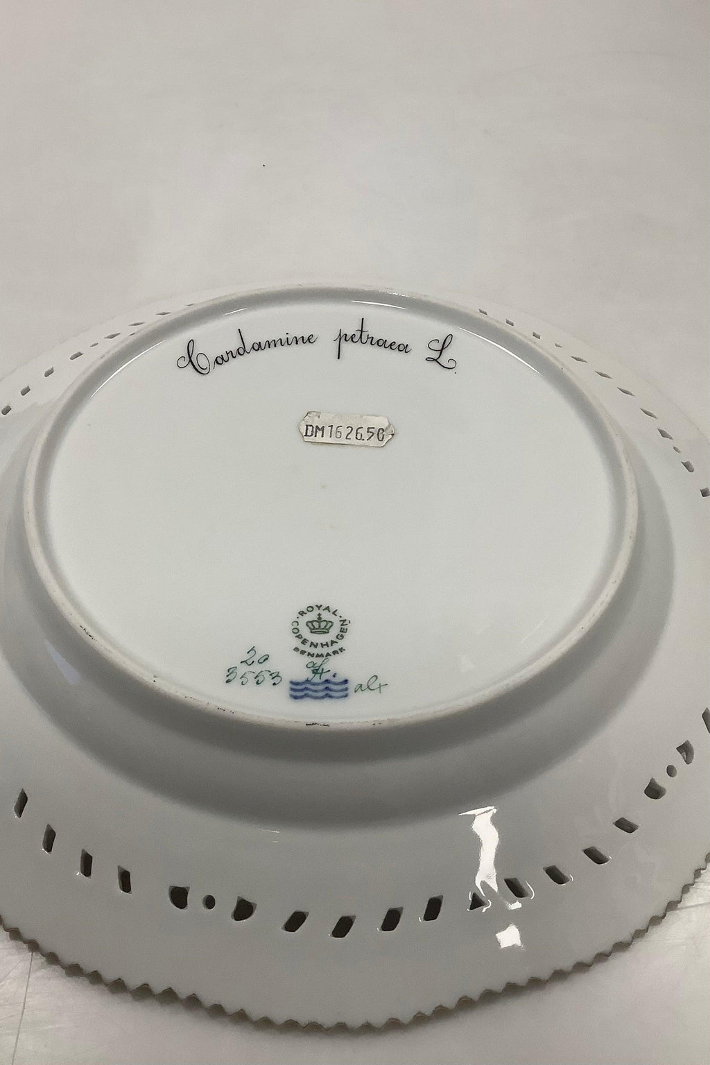 Royal Copenhagen Flora Danica tallerken med gennembrudt kant No 20/3553. Latinsk navn: Cardamine petraea L