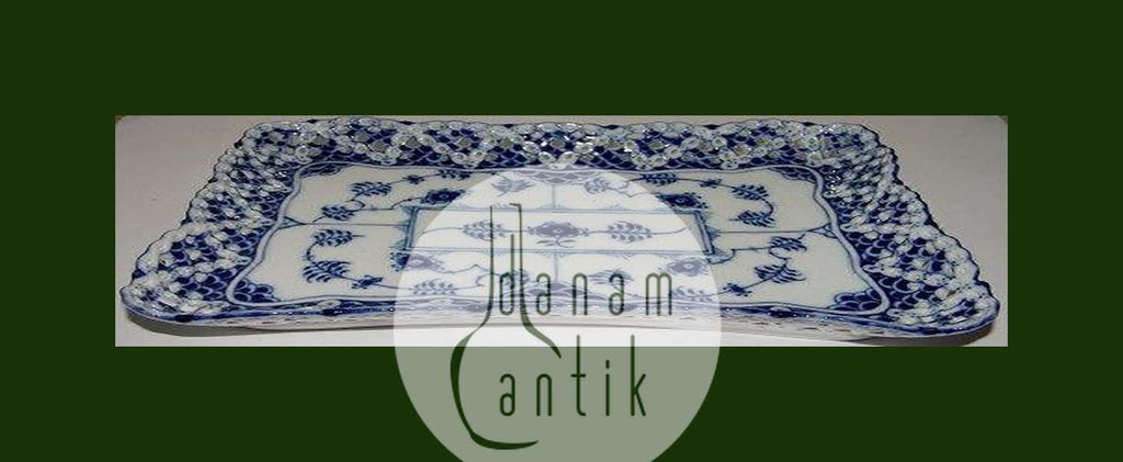 Royal Coenhagen Blaues geriffeltes Vollspitzen-Tablett Nr. 1122. Misst 22,5cm x 14,5cm und ist in gutem Zustand.
