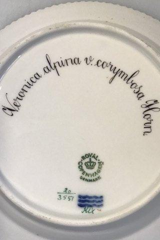 Royal Copenhagen Flora Danica Dessertteller Nr. 20/3551 Lateinischer Name: Veronica alpina v corymbosa Horn(Alpenehrenpreis). Maße 17 cm