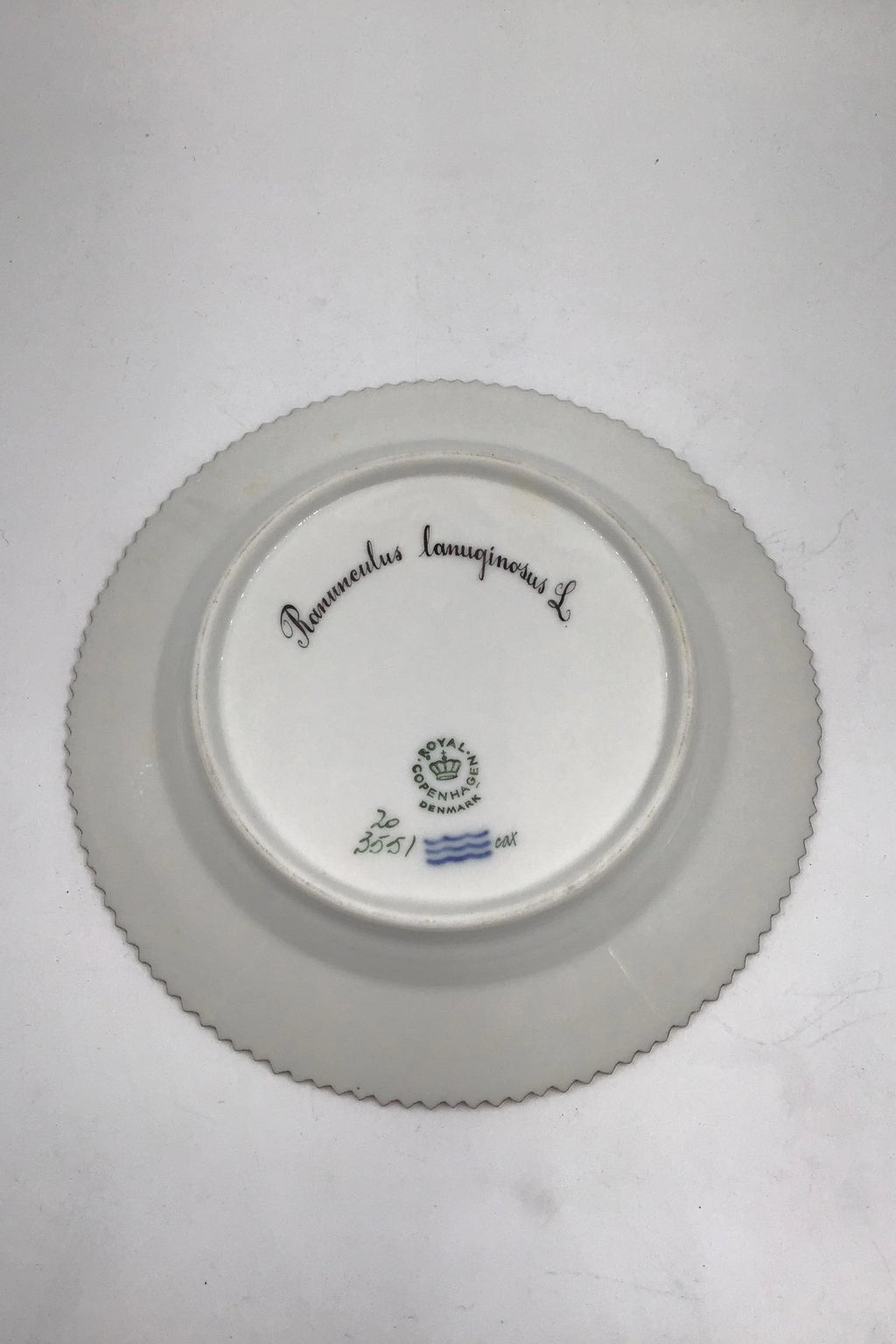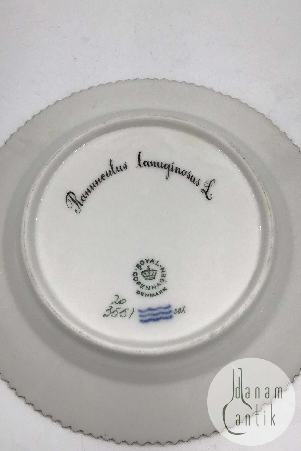 Royal Copenhagen Flora Danica Dessertteller Nr. 20/3551 1. schwarz. Lateinischer Name: Ranunculus lanuginosus L. Misst 17 cm (6,69 inch).