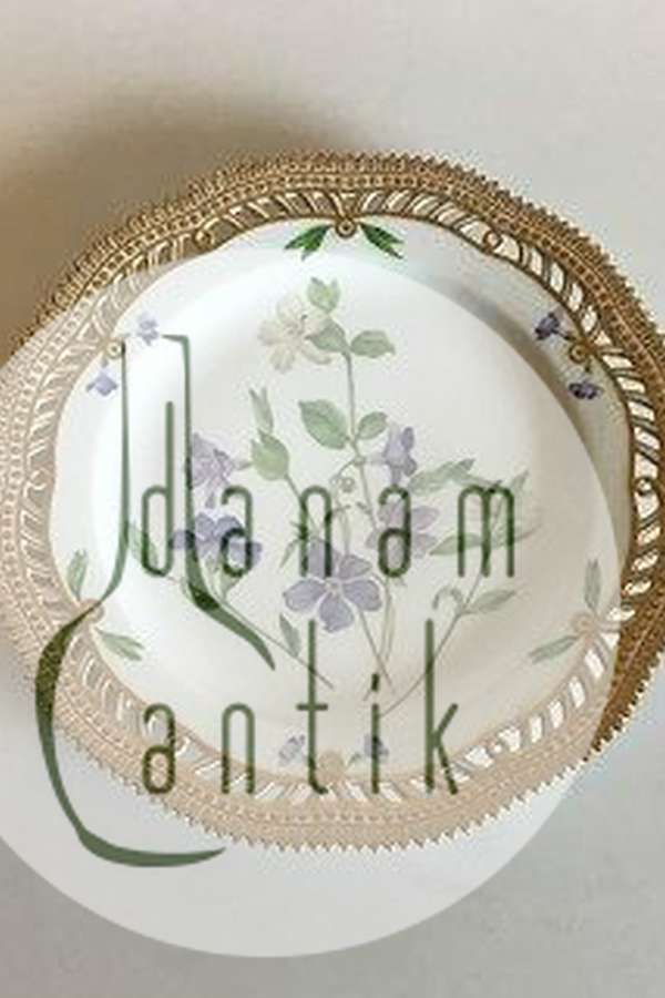Royal Copenhagen Flora Danica Mittagsteller Nr. 20/3533. Maße 22,7 cm. 1. Benotung. Mit durchbrochenem Rand. Lateinischer Name: Vinca minor L.