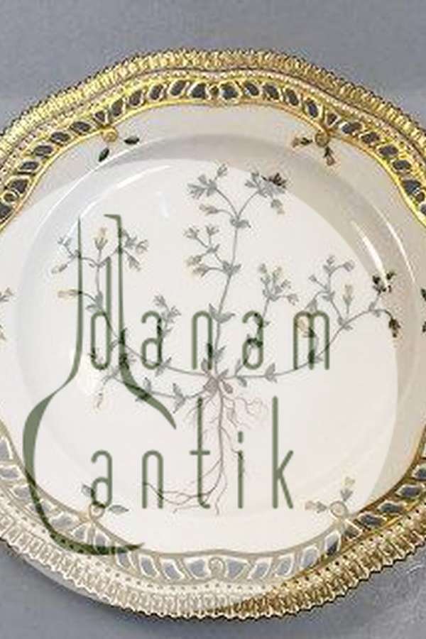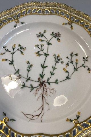 Royal Copenhagen Flora Danica Lunch Teller Nr. 20/3554 mit durchbrochenem Rand Lateinischer Name: Cerastium glutinosum L (Klebriger Hühnerdarm). Maße 23 cm. 1. Schwarz. In perfektem Zustand.