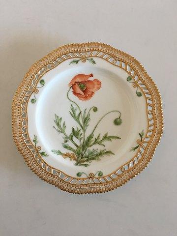 Royal Copenhagen Flora Danica Speiseteller Nr. 3554 mit durchbrochenem Rand. 22,5 cm Ø. Lateinischer Name: Papaver Dubium (Ackermohn). In gutem Gesamtzustand. Von 1894-1900.