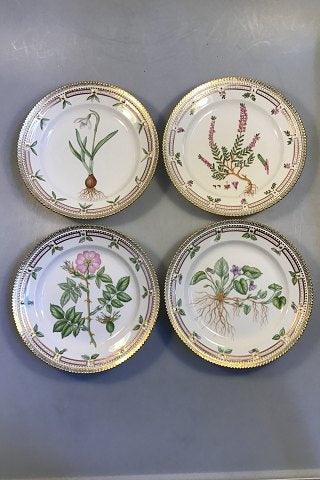 Royal Copenhagen Flora Danica Lunch Plates No 20/3550 (Jubiläumsset mit 4 Tellern) Lateinische Namen: Galanthus nivalus L, Erica vulgaris L, Viola odorata L und Rosa canina L. Maße: Durchm. 22 cm.