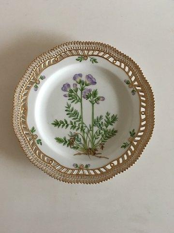 Royal Copenhagen Flora Danica Durchbrochener Speiseteller Nr. 20/3554. 23 cm. Lateinischer Name: Polemonium Humile Willd. Mit altem Stempel von 1935.