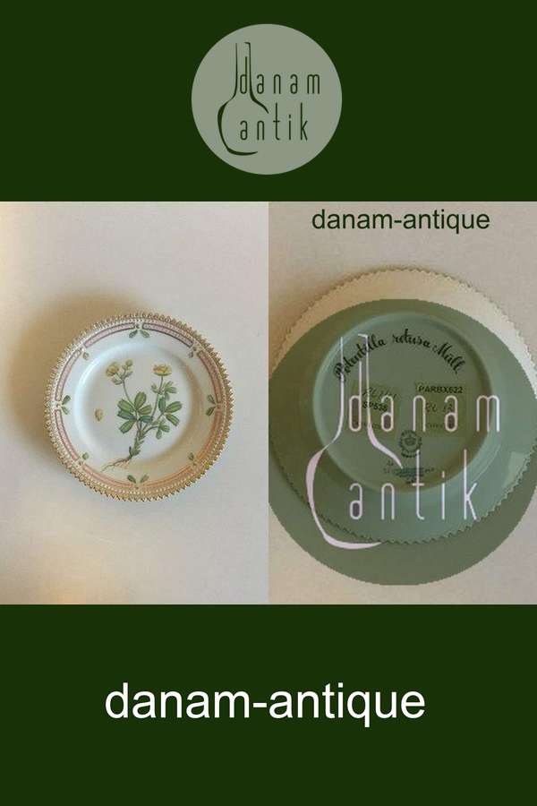 Royal Copenhagen Flora Danica Kagetallerken Nr. 20/3552. Lateinischer Text: Potentilla retusa Müll. Maße 14,3 cm.