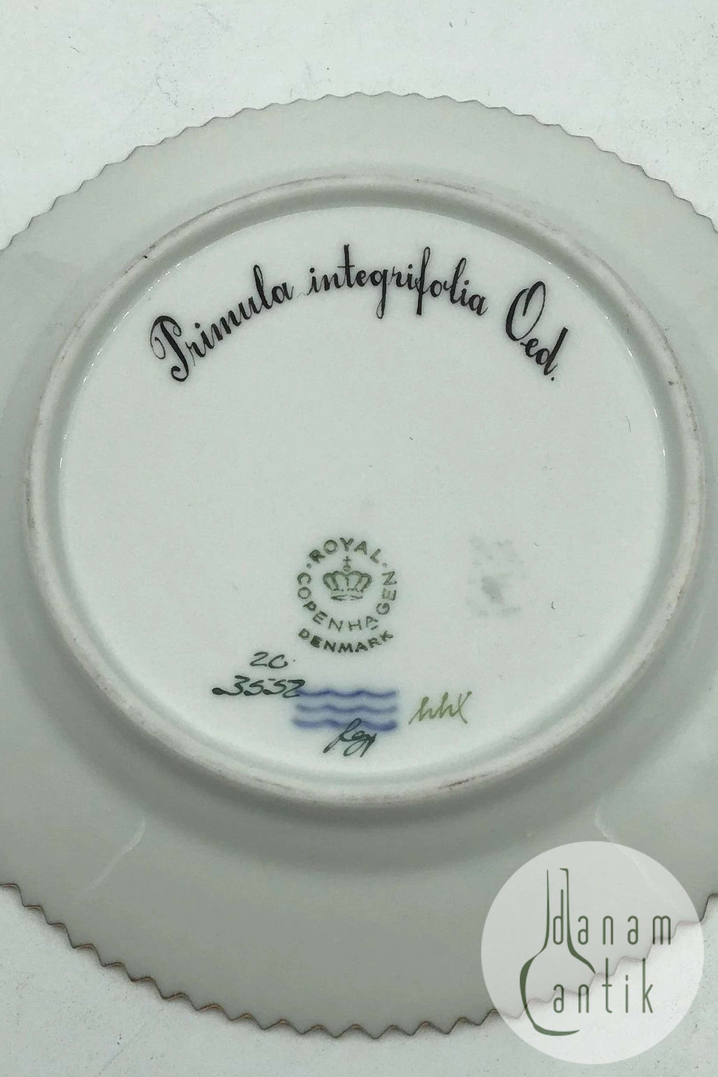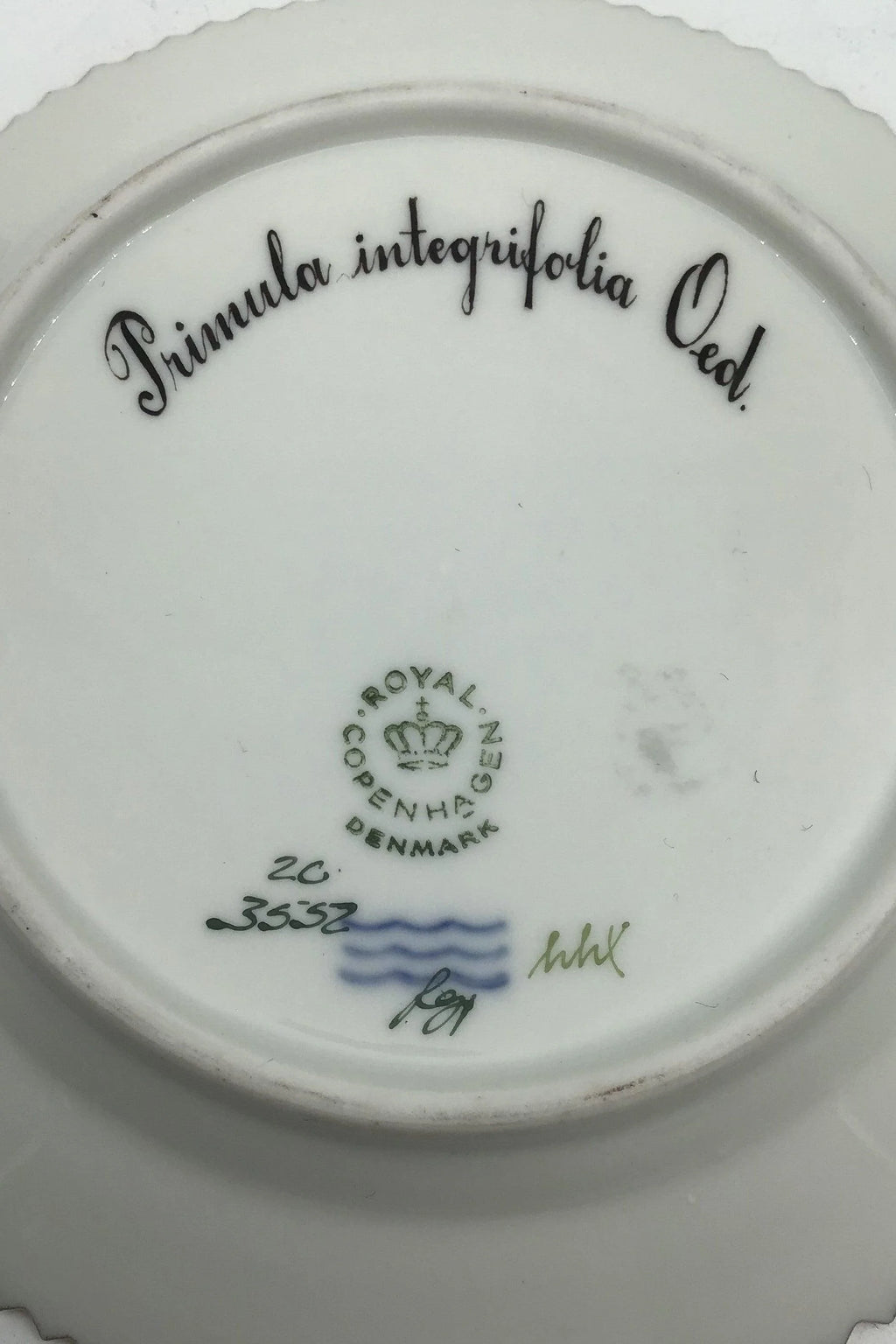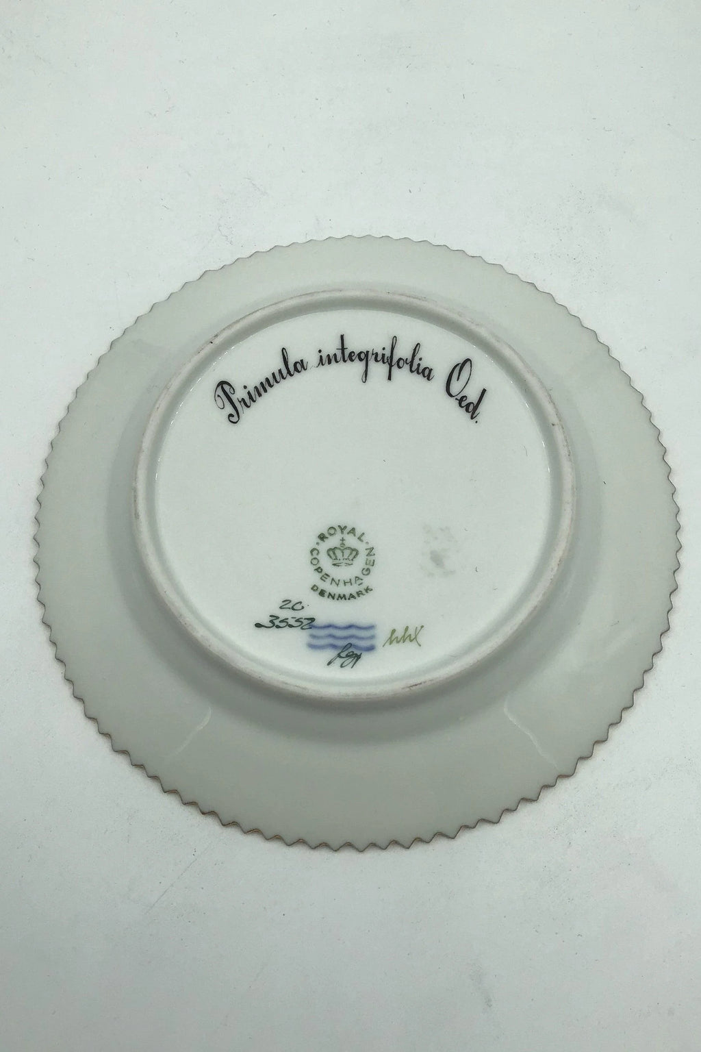 Royal Copenhagen Flora Danica Kuchenteller Nr. 20/3552. Lateinischer Name: Primula integrifolia Oed. Durchmessermaß 14,3 cm (5,62 Zoll)