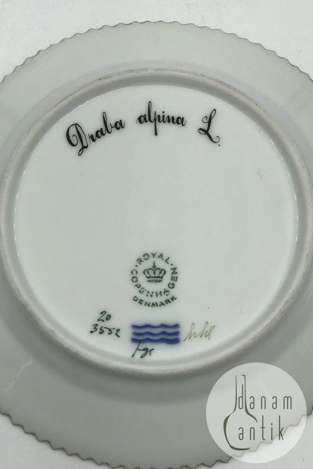 Royal Copenhagen Flora Danica Kuchenteller Nr. 20/3552. Lateinischer Name: Draba alpina L. Durchmesser 14,3 cm (5,62 inch)