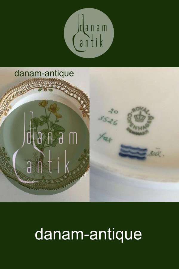 Flora Danica Essteller mit durchbrochenem Rand Nr. 20/3526. 27 cm Lateinischer Name: Caltha Palustris