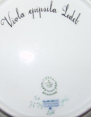 Royal Copenhagen Flora Danica Salatteller Nr. 3573. Maße: 20 cm. Lateinischer Name Viola epipsila Ledeb. Hat einen Chip, aber sonst in gutem Zustand.