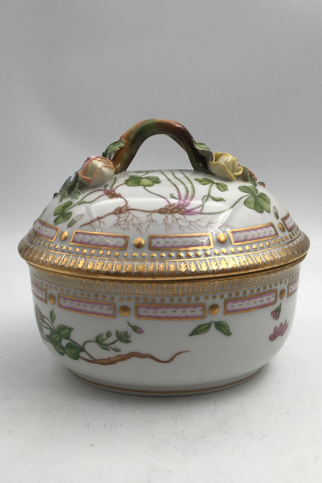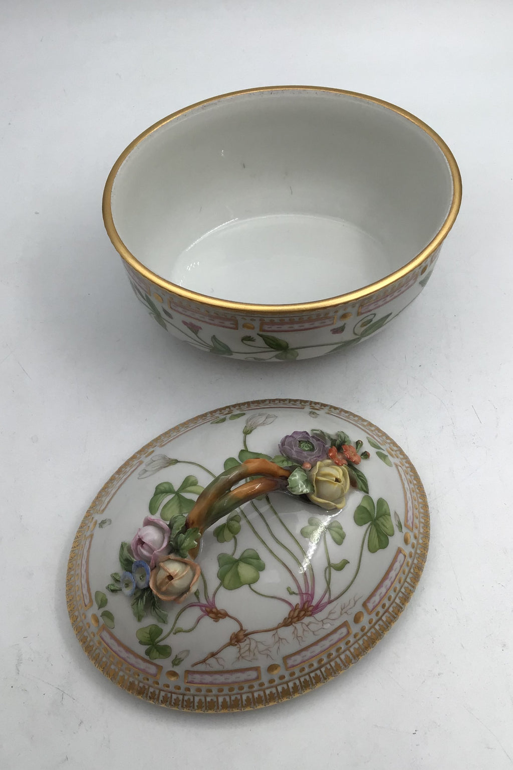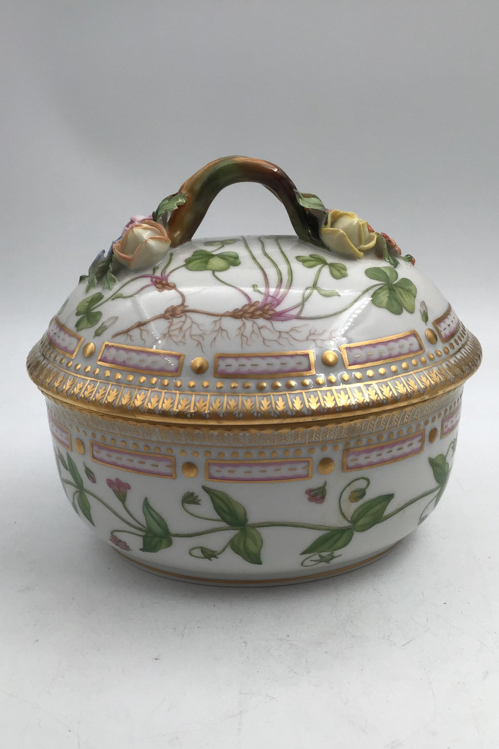 Royal Copenhagen Flora Danica Stor Sukkerskål / Lille Lågterrin No. 20/3582. Måler 16 cm x 14 cm. (6.29 inch x 5.51 inch) 1. Sortering. Latinsk navn: "Anagallis arvensis L." og "Oxalis Acetosella L."