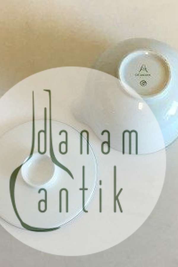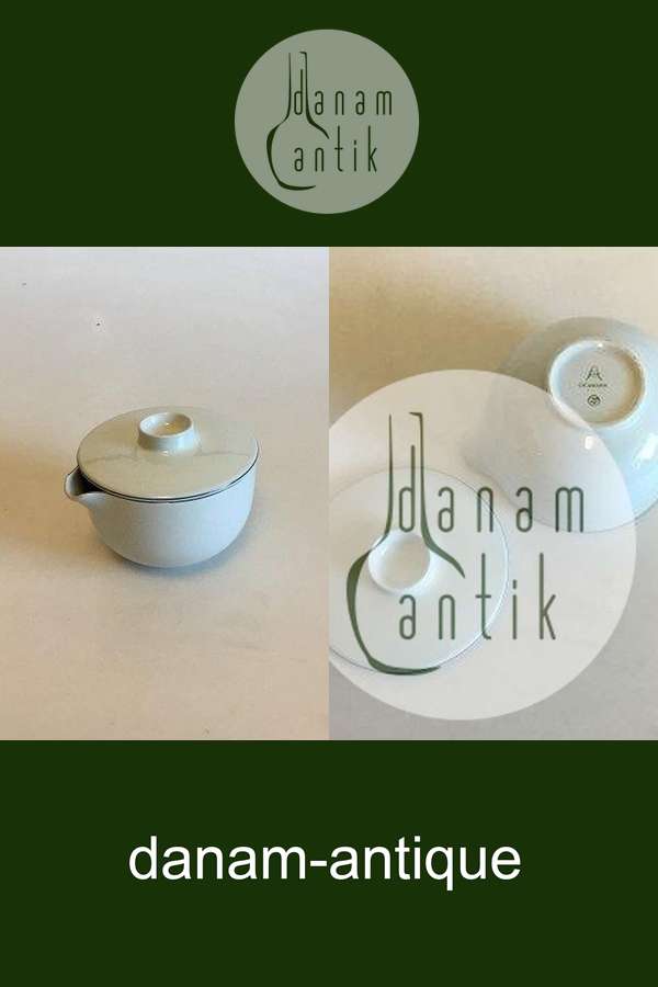 Royal Copenhagen Grethe Meyer Blue Edge Soßenschüssel mit Deckel. Nr. 3085A Maße 7,7 cm x 11,5 cm