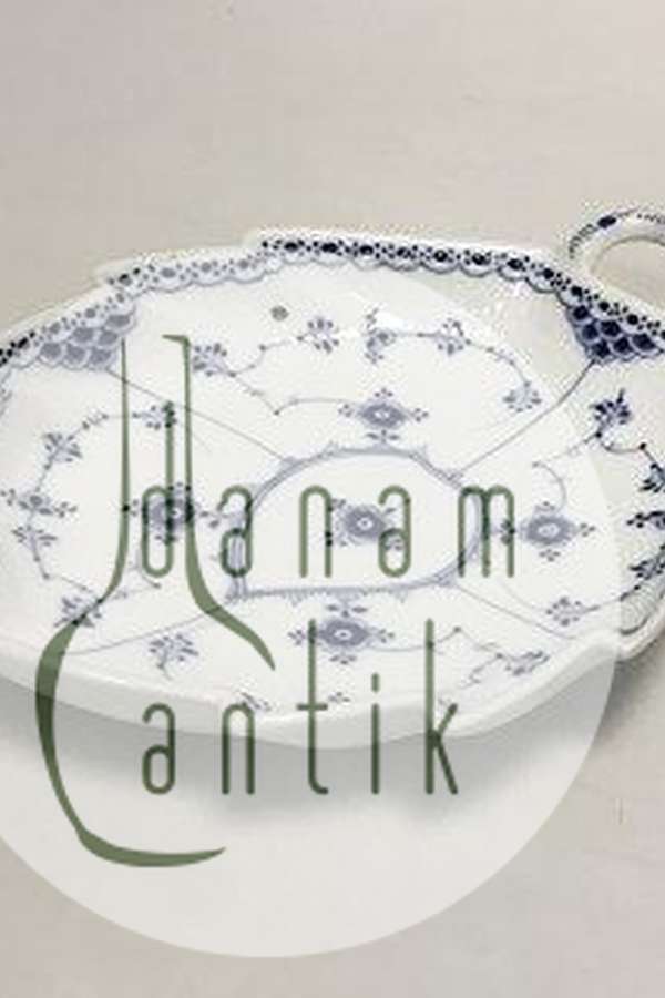 Royal Copenhagen Blue Fluted Half Lace Leaf Shaped Cake Dish No 547. Maße: 18,5 cm. Ein paar kleine Mängel