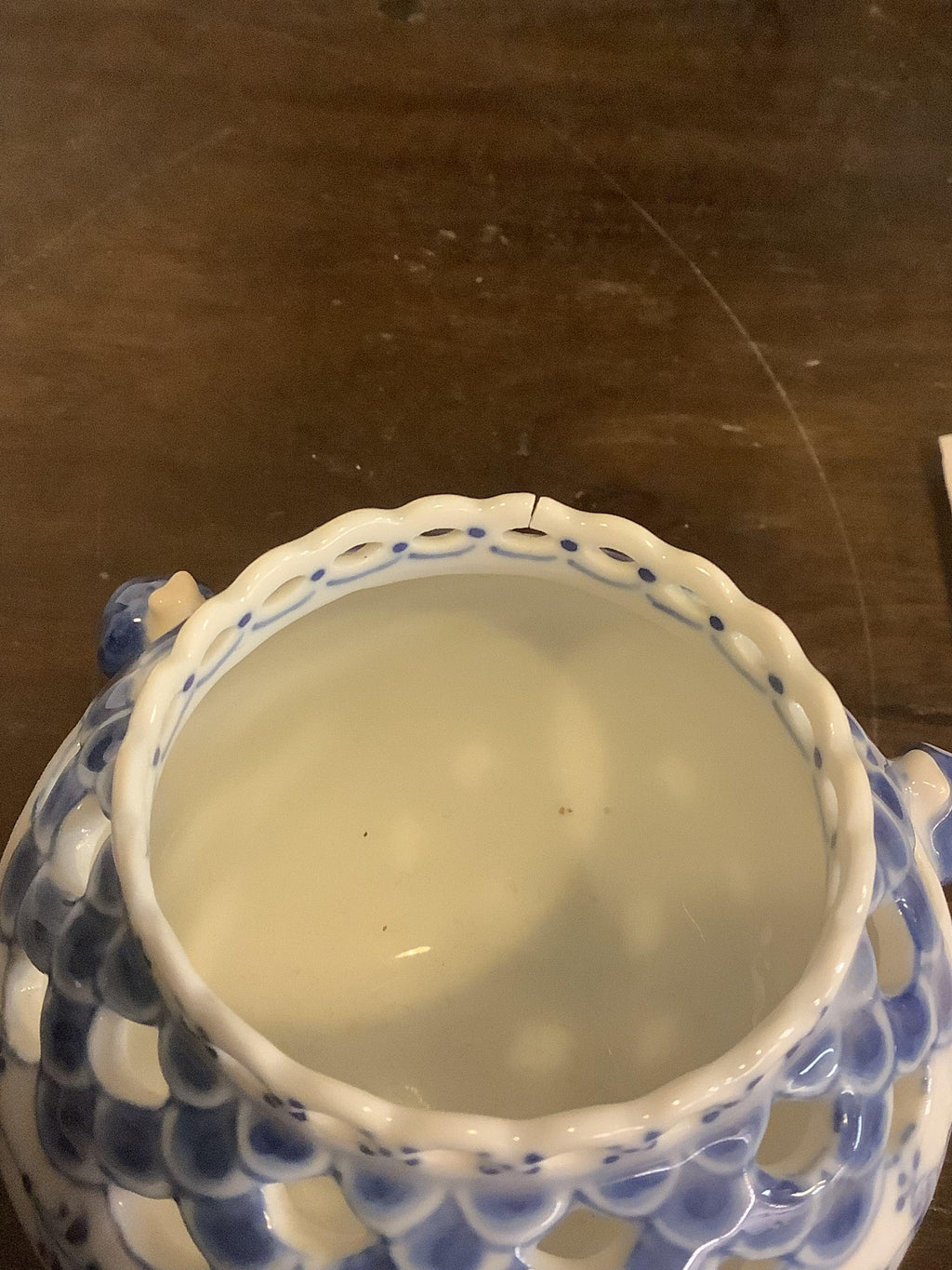 Royal Copenhagen Muschelmalet Helblonde Kleine Vase Nr. 1043. Maße 7,5 cm (2 61/64 in.). Verbrannte Risse auf der Felge