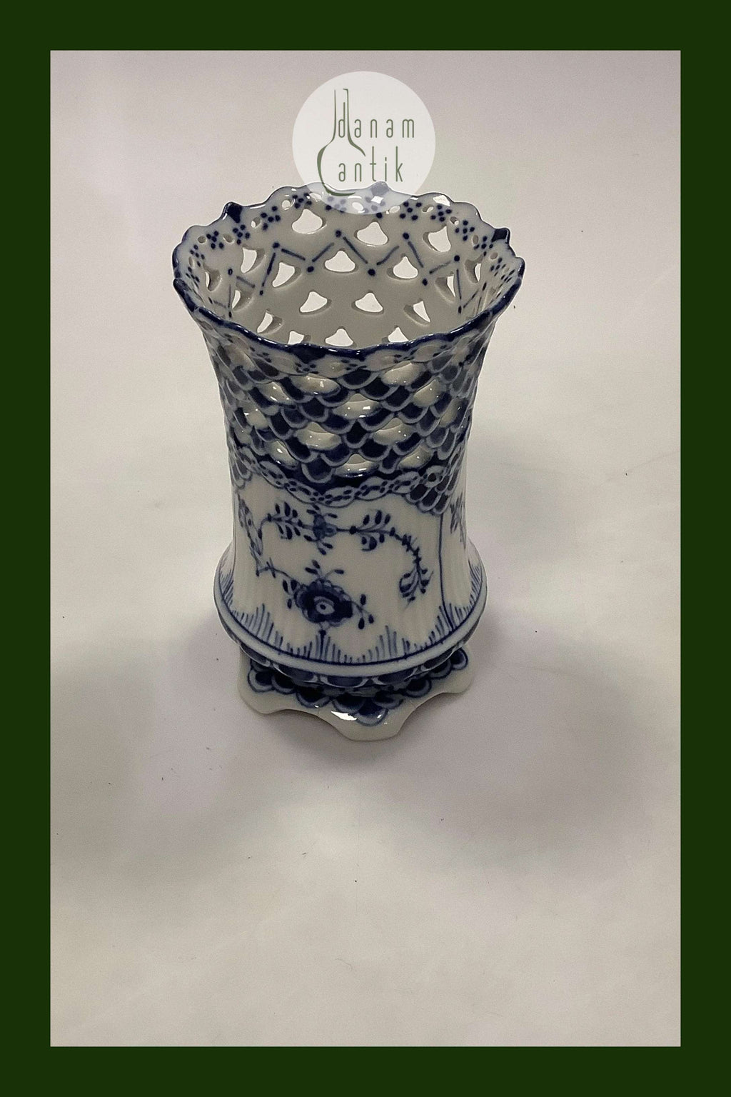 Royal Copenhagen Blaue geriffelte Vase mit Spitze Nr. 1016