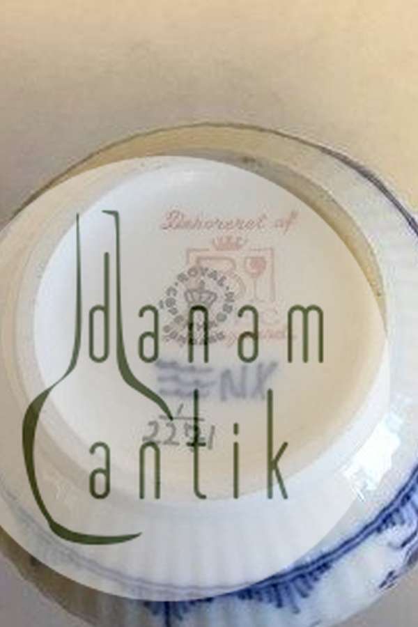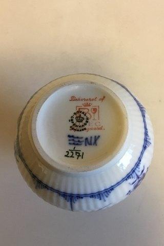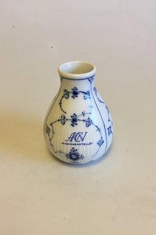 Royal Copenhagen Blaue kannelierte Vase Nr. 2271. Maße 12,5 cm. Mit Logo von ACN Missionshotellet.