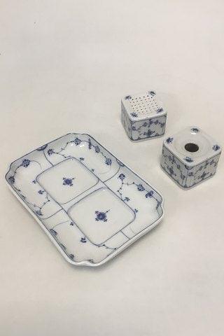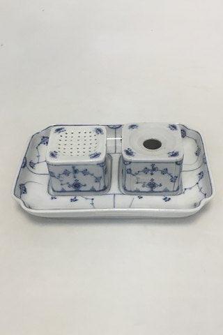 Frühes Royal Copenhagen Blue Fluted Antique Inkpot bestehend aus Tablett und Behälter für Tinte und Sand