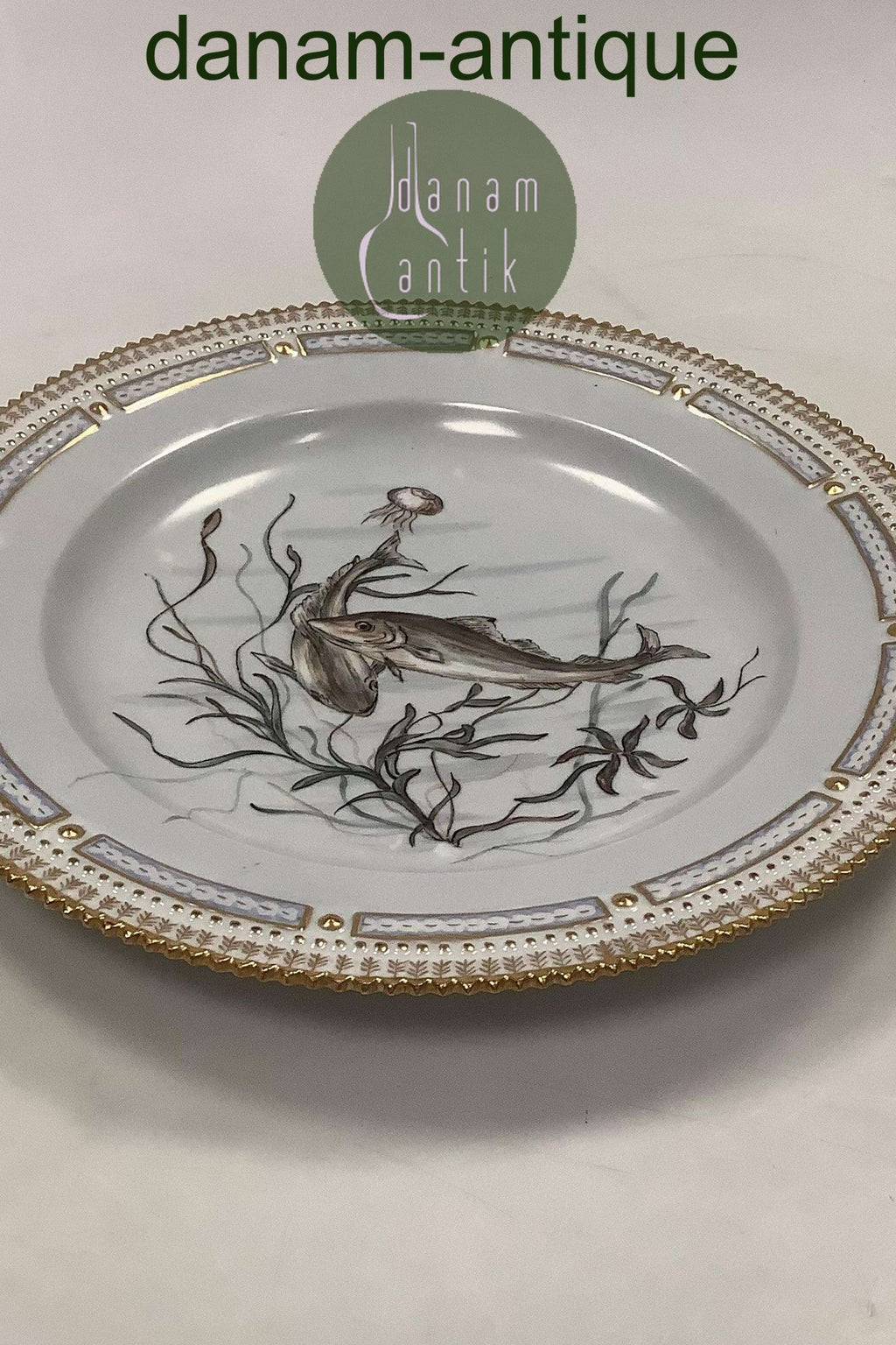 Royal Copenhagen Privat gemalt Flora Danica Fisch Teller Nr. 3549.