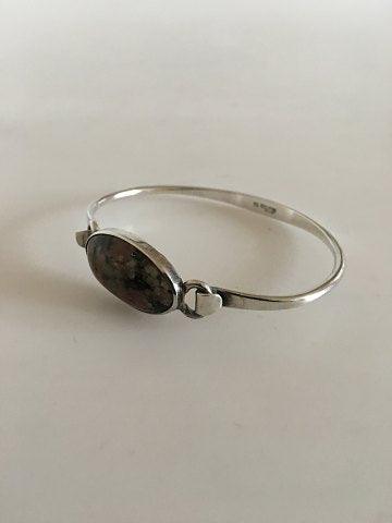 Niels Erik von Sterling Silber Armreif mit Steinen. 6,1 cm Ø. Der Stein misst ca. 2,6 cm L. Wiegt 15 Gramm.