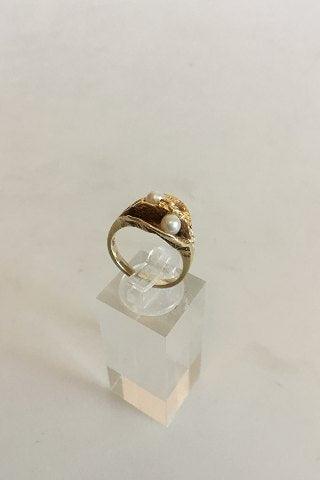 Ring aus 14 K Gold mit zwei Perlen. Ringgröße 52. Wiegt 5,48 Gramm. Gestempelt 585 H8 (1934)