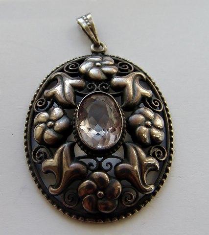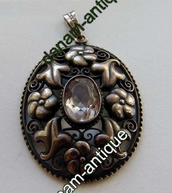 Sterling Silber Brosche mit weißem Stein. Misst 4,3cm und ist in gutem Zustand.