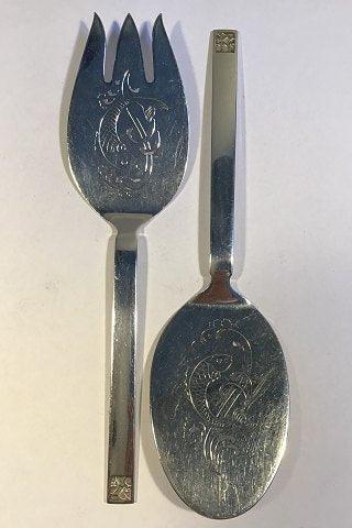 Evald Nielsen Sterling Silber No 33 Fisch Servier-Set (2) Maße L 24 cm