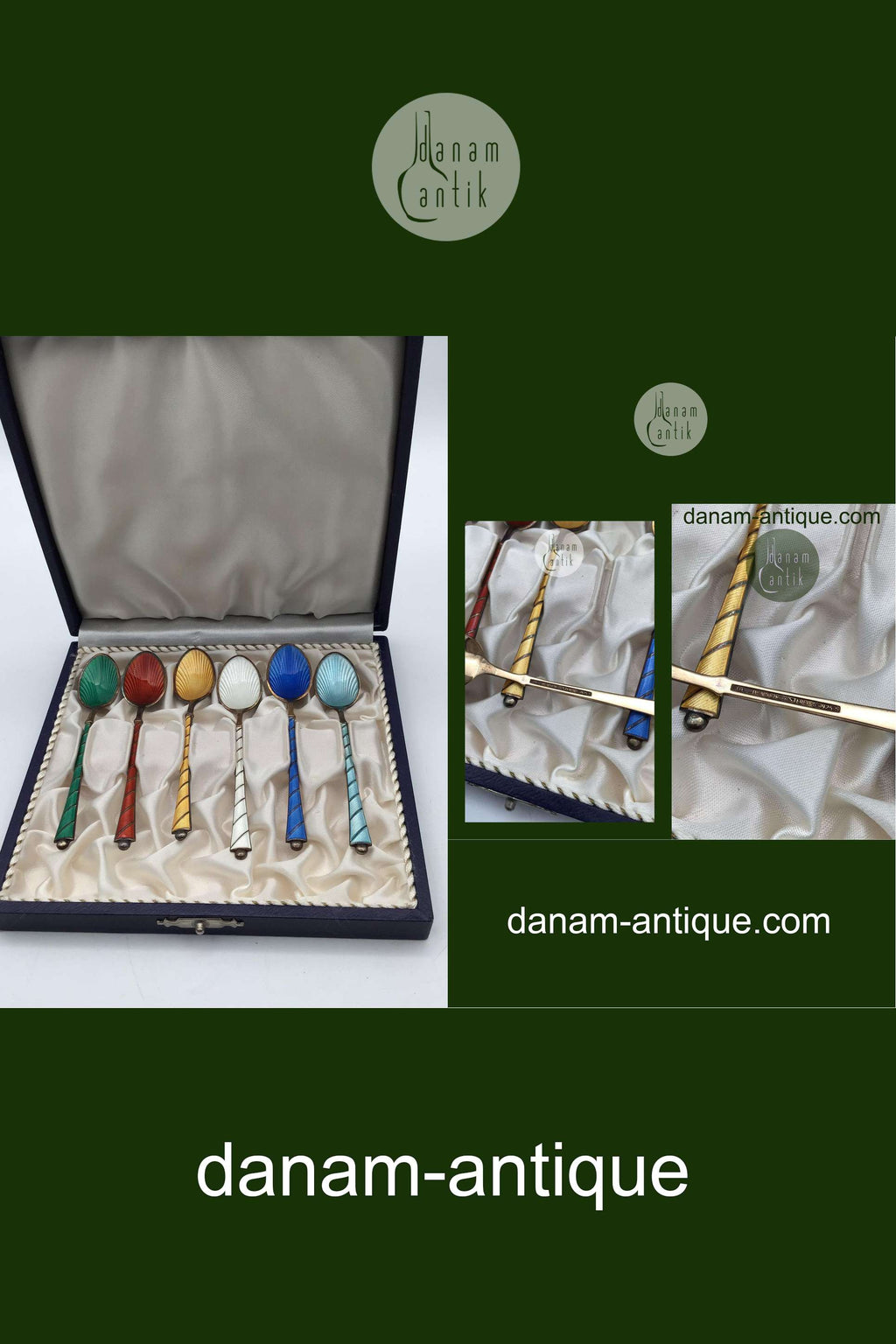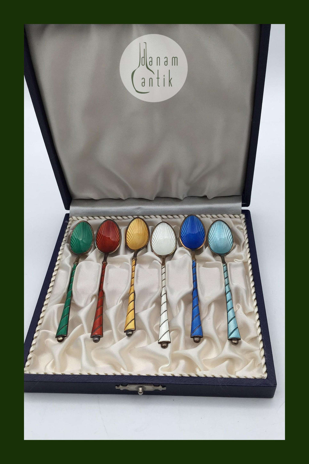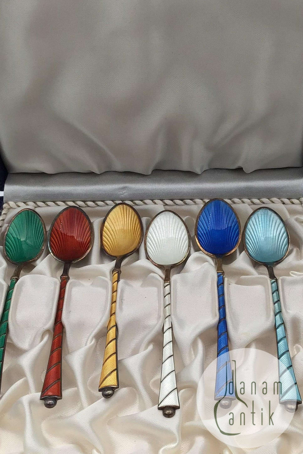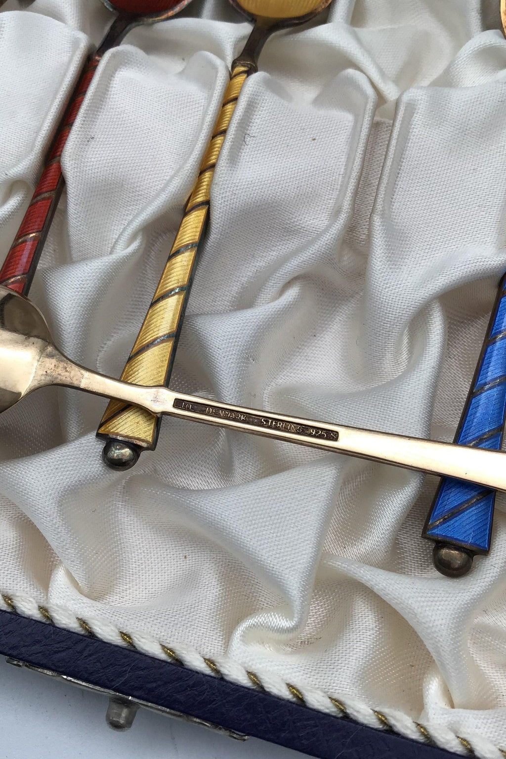 Egon Lauridsen (ELa) Sterling Silber/Edelstein Mokassin Löffel Vergoldet(6) Misst 9,4 cm (3,70 Zoll) (Box)