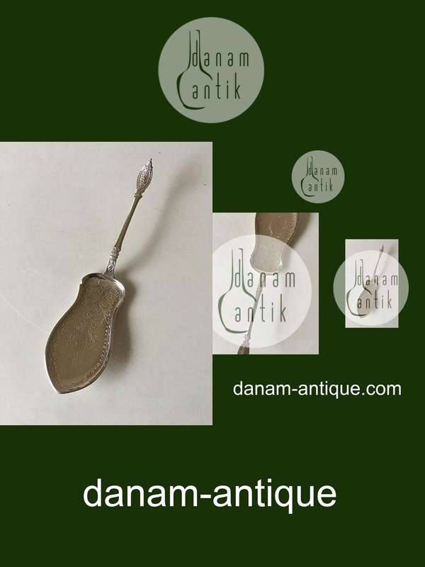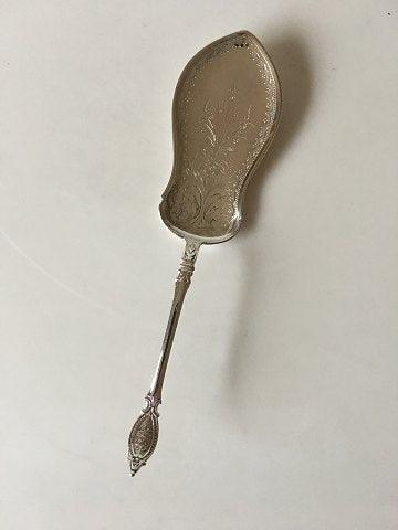 Schön verschnörkeltes Silber Servierlöffel mit gebogenem Griff. CAB. 22 cm L