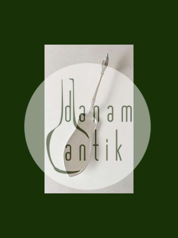 Schöner verschnörkelter Silberlöffel mit gebogenem Griff. CAB
