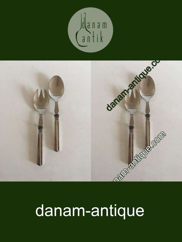 Hans Hansen Heirloom Silver Nr. 18 Salatbesteck aus Sterlingsilber und Stahl