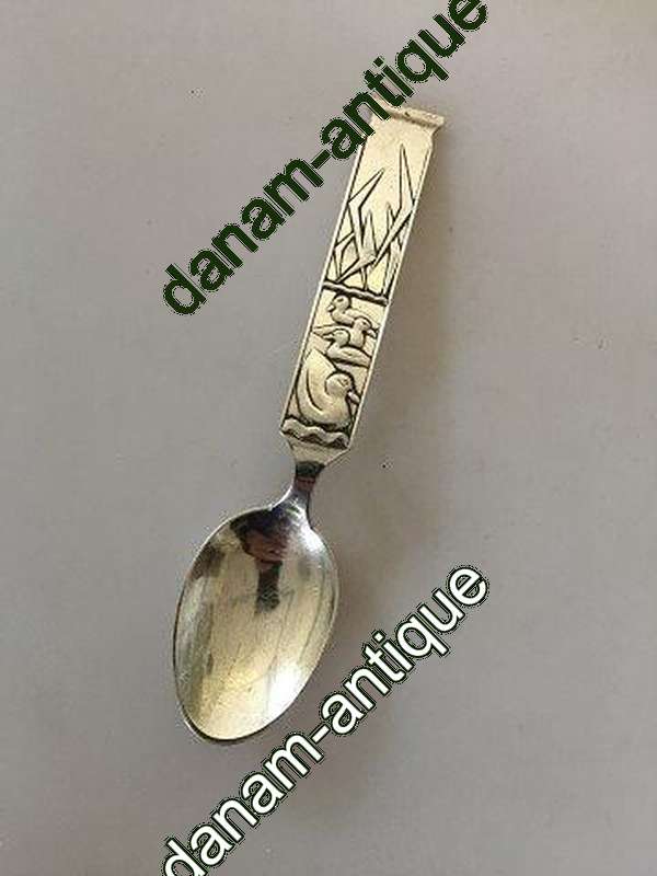 Isländischer Silberlöffel mit Enten von JON. Maße 16 cm