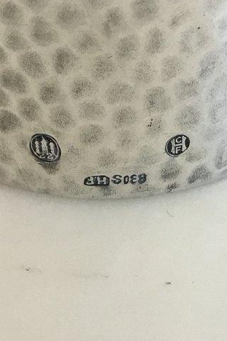 Serviettenring mit Hammerschlag 830 S. Markiert H.F von 1922. Vermutlich H. Fischer Kopenhagen. Maße: 4,3 cm Durchmesser. x 3 cm. Wiegt 13,5 Gramm