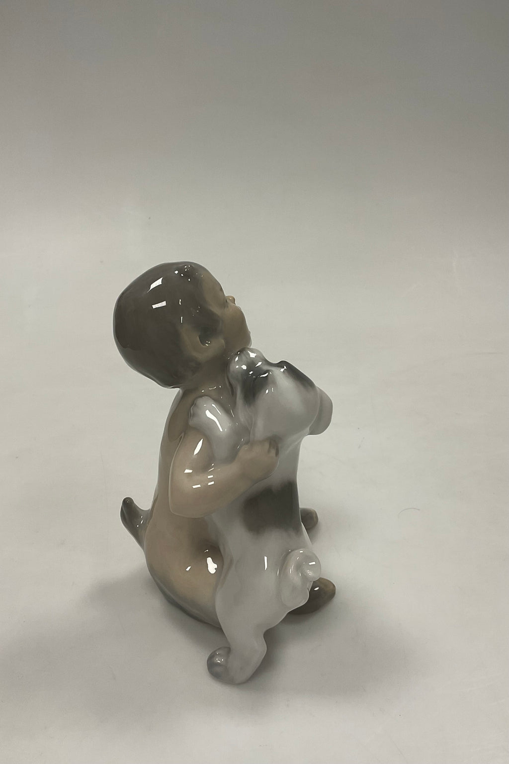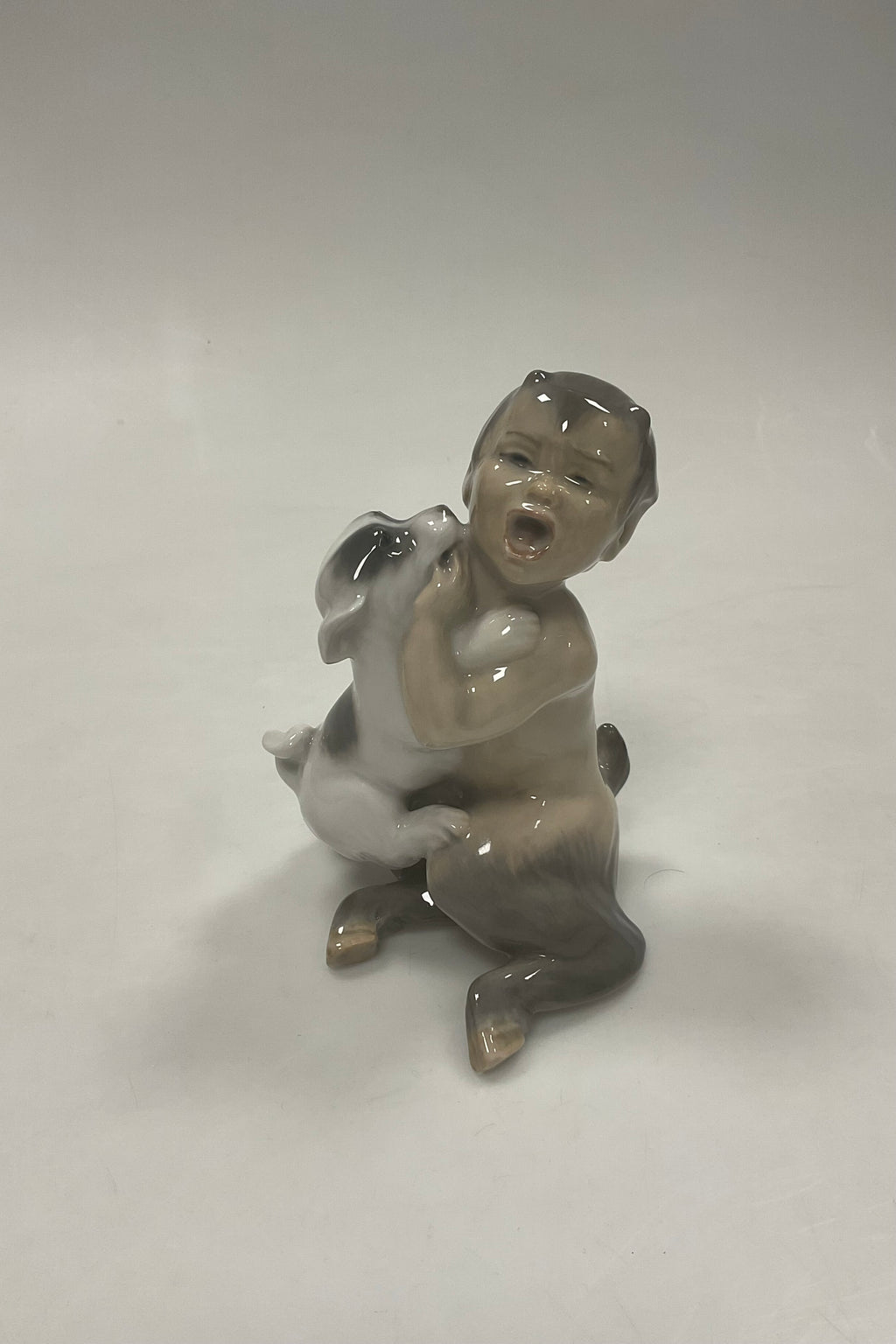 Royal Copenhagen Figur af Faun med hund No 2823. Mærket som 2. sortering. Måler 14,5 cm