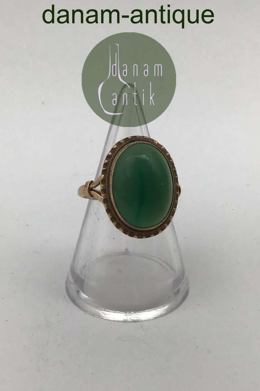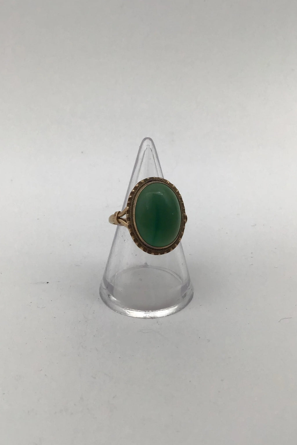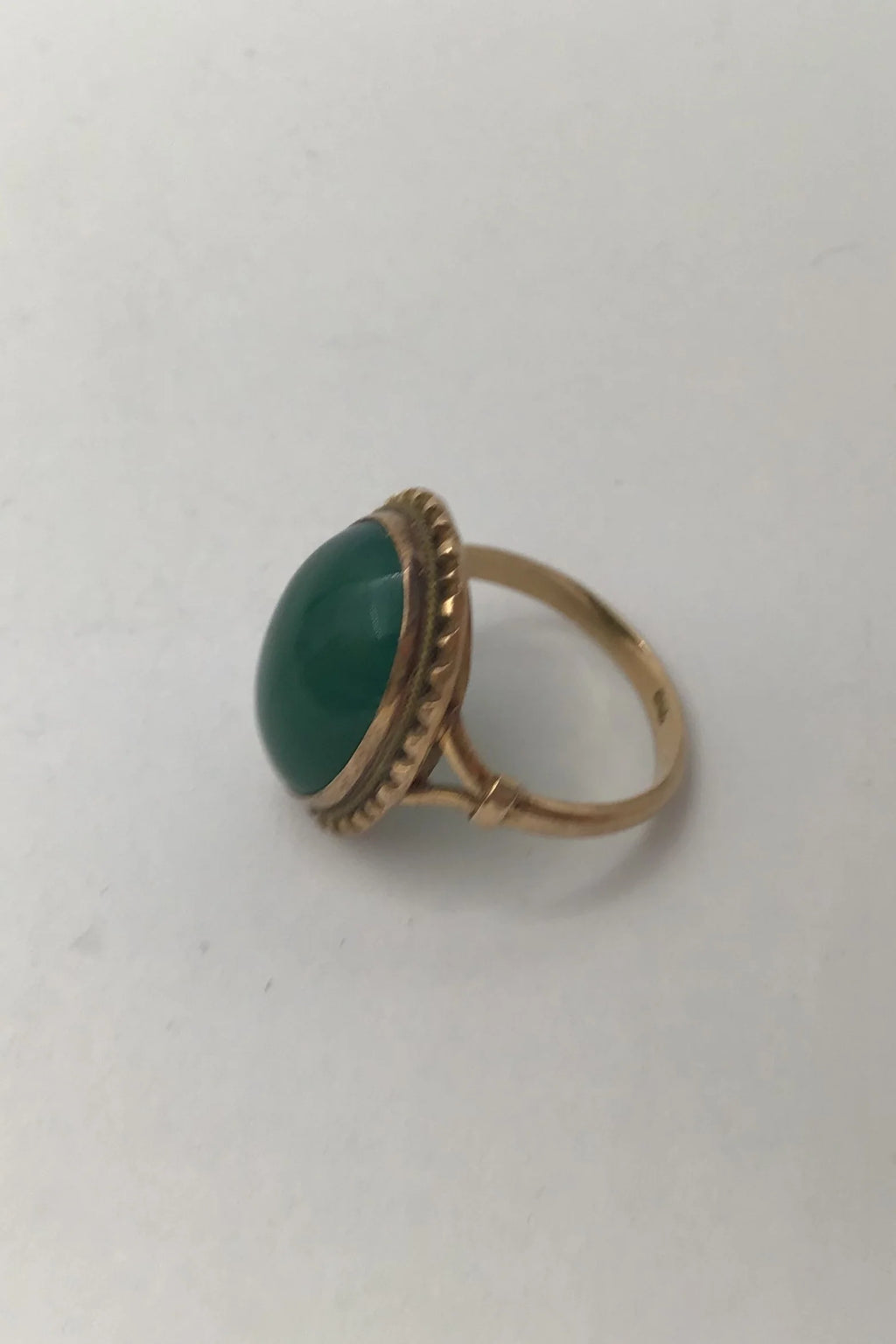 18K Guld Ring med Grøn Agat Måler Ring Str. 52 (US 6) Vægt 4.7 gr. (0.17 oz)