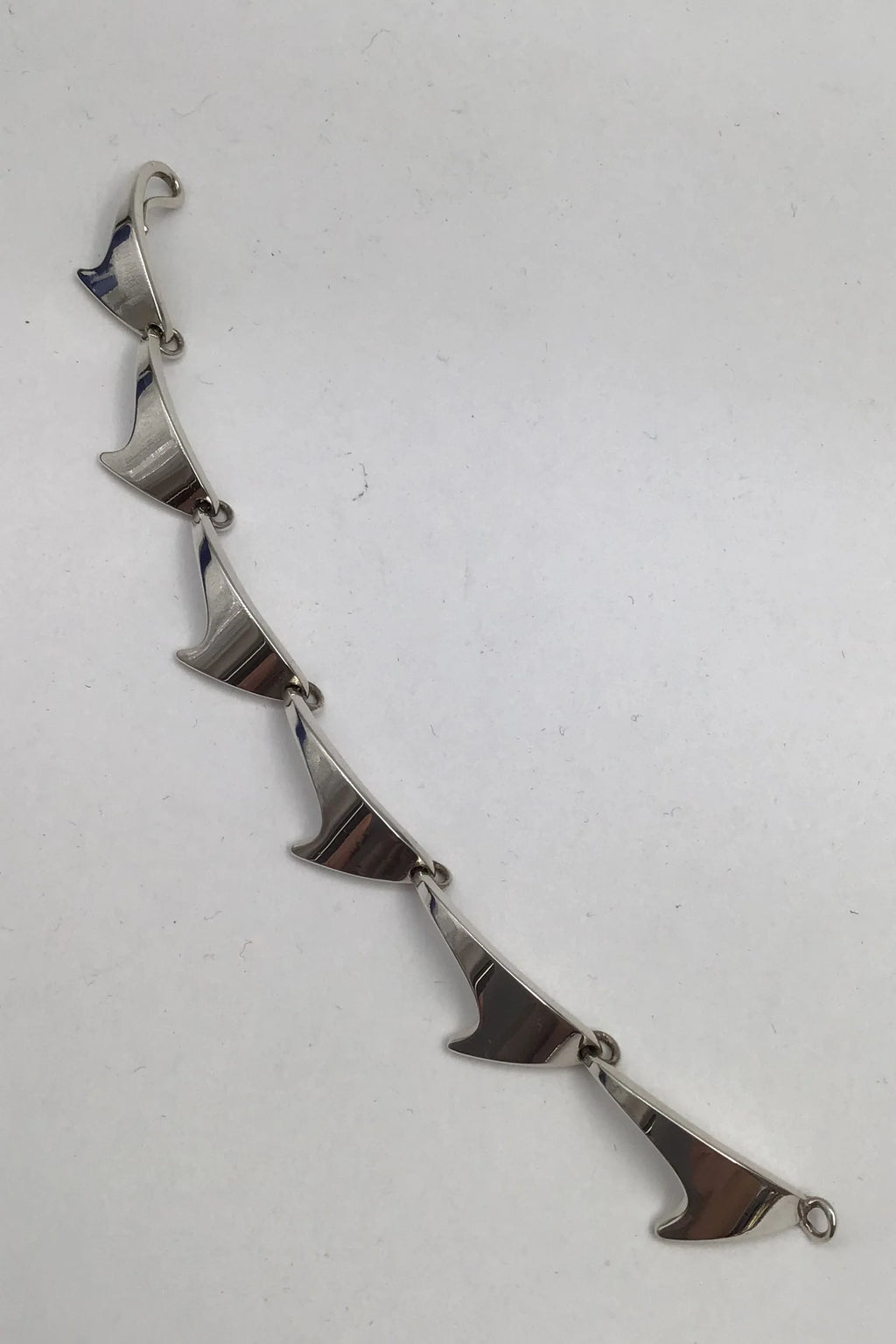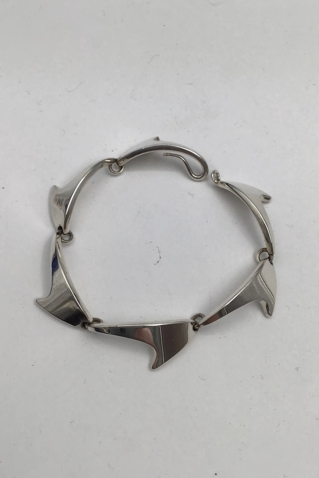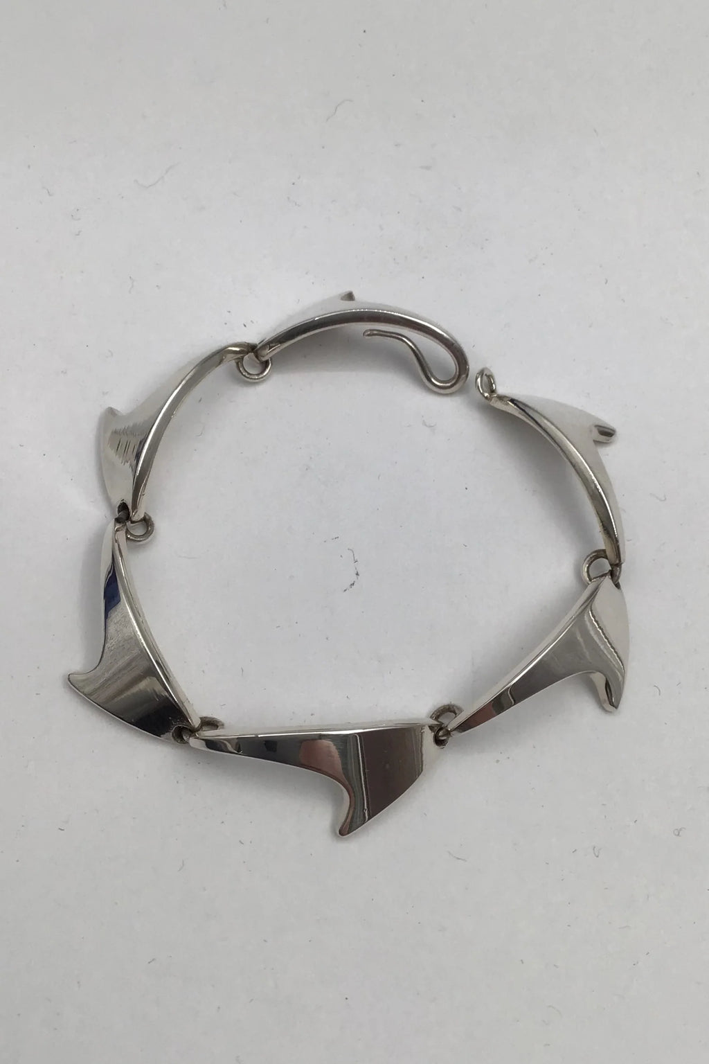 Bent Knudsen Sterling Sølv Hajfinne Armlænke (svungen finne version). Måler 17.5 cm (6.88 inch) Vægt 27.5 gr. (0.97 oz)