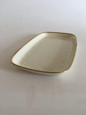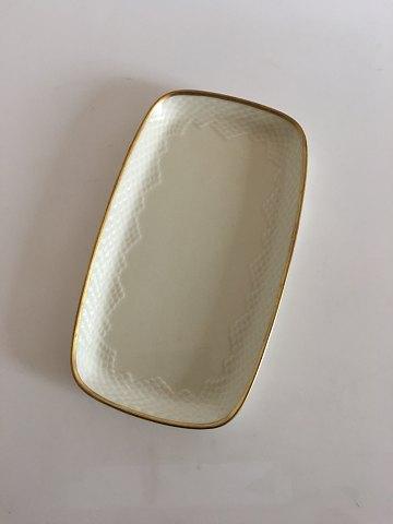 Bing & Grondahl Aakjær Tablett Nr. 96. 27 x 15 cm. Cremefarben mit Goldrand, in gutem Zustand.
