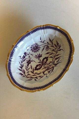 Bing & Grondahl Jugendstil Ovale Schale auf Fuß mit violettem Blumendekor. Maße 28 cm x 23 cm x 8 cm