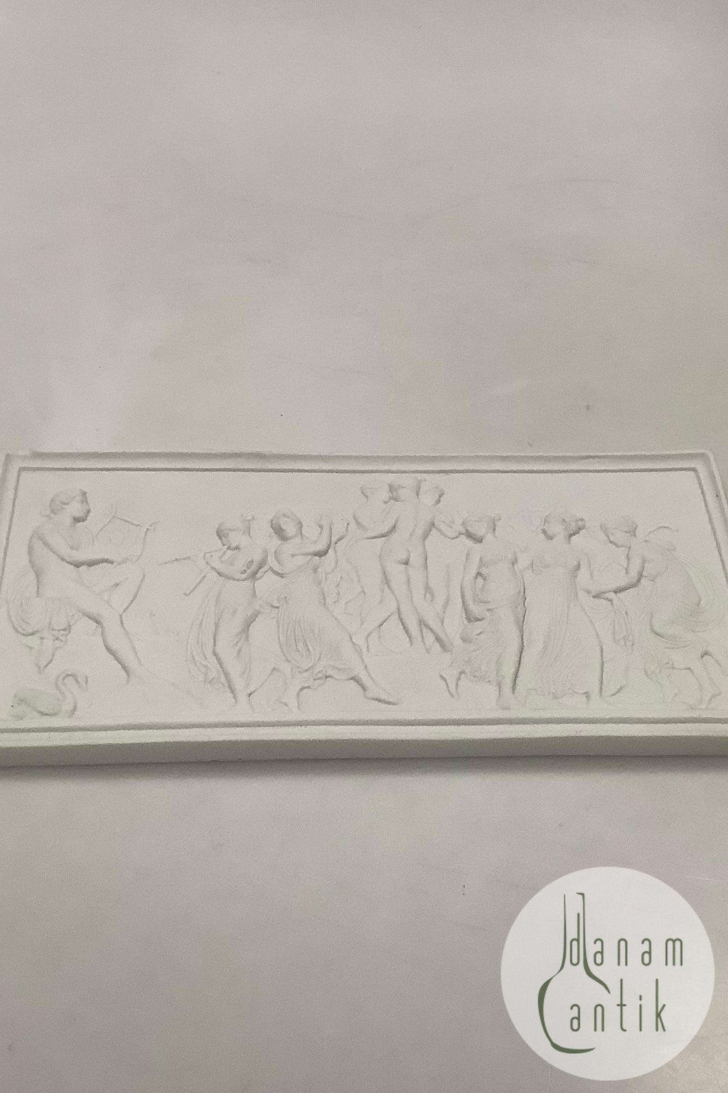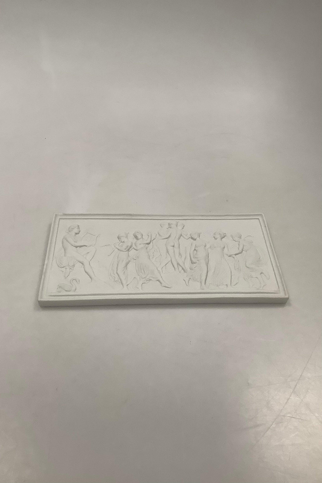 Bing und Grondahl Bisquit "Der Tanz der Musen auf Helikon". Kopie eines Reliefs, das 1816 in Rom modelliert wurde, Maße 12,3 cm x 24,8 cm. Ein Chip in der oberen linken Ecke.
