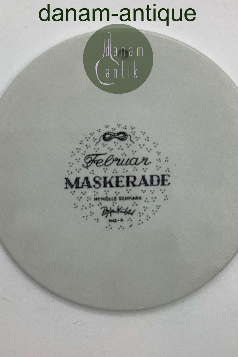 Monatlicher Teller in Steingut für Februar MASKERADE. Entworfen von Bjørn Wiinblad für Nymølle. In perfektem Zustand. Fabrikmarke auf der Rückseite. Maße: 15 cm (5,90 Zoll)