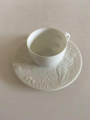 Bjørn Wiinblad for Rosenthal Hvid Espressokop med dekoreret underkop. I fin stand. Koppen måler 4.5 x 5.5 cm. Underkop 12 cm Ø.