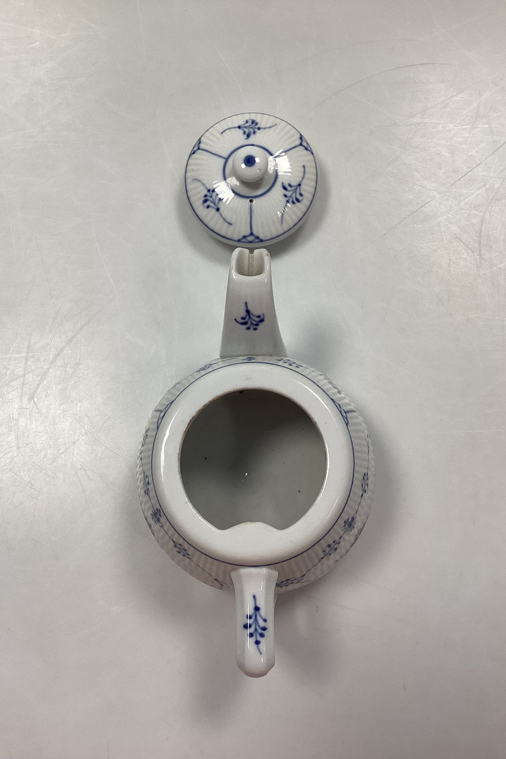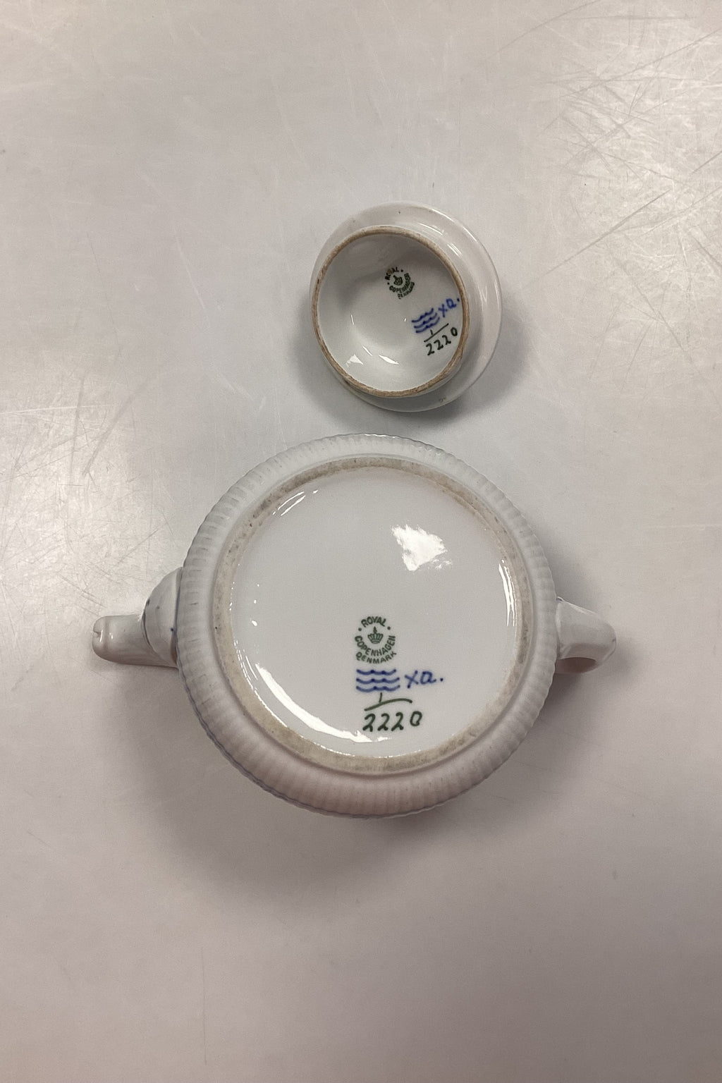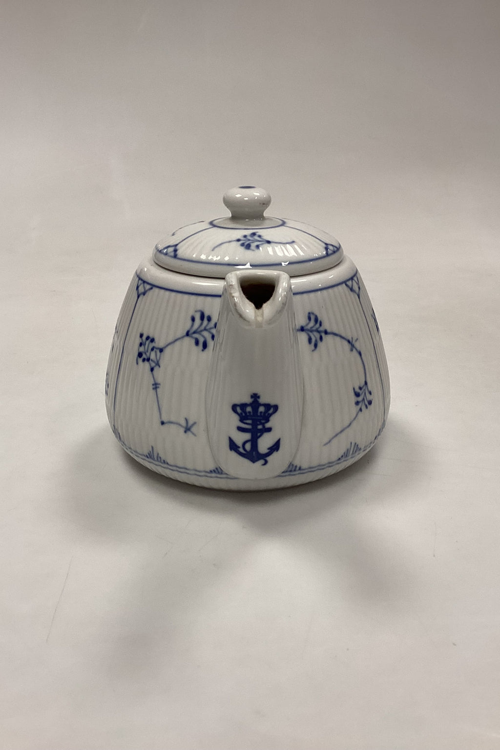 Royal Copenhagen Musselmalet Riflet Hotel Tekande med Logo No. 2220. Logo fra Søværnet. Har et afslag på tuden, se foto.